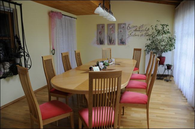 Unser Motto haben wir im Wintergarten verewigt. An einem großen, ovalen Tisch können hier in heller Atmosphäre bis zu 10 Personen Platz nehmen und sich verwöhnen lassen.